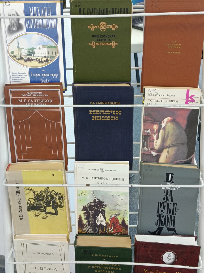 В читальном зале библиотечно-издательского комплекса открылась книжная выставка «Я люблю Россию до боли сердечной», приуроченная к 200-летию со дня рождения Михаила Евграфовича Салтыкова-Щедрина. На ней представлены самые известные произведения Салтыкова-Щедрина: «История одного города», «Господа Головлевы», «Пошехонская старина», сказки и др., а также здесь можно найти биографические исследования, критические статьи и воспоминания современников, которые помогут лучше понять творчество автора.