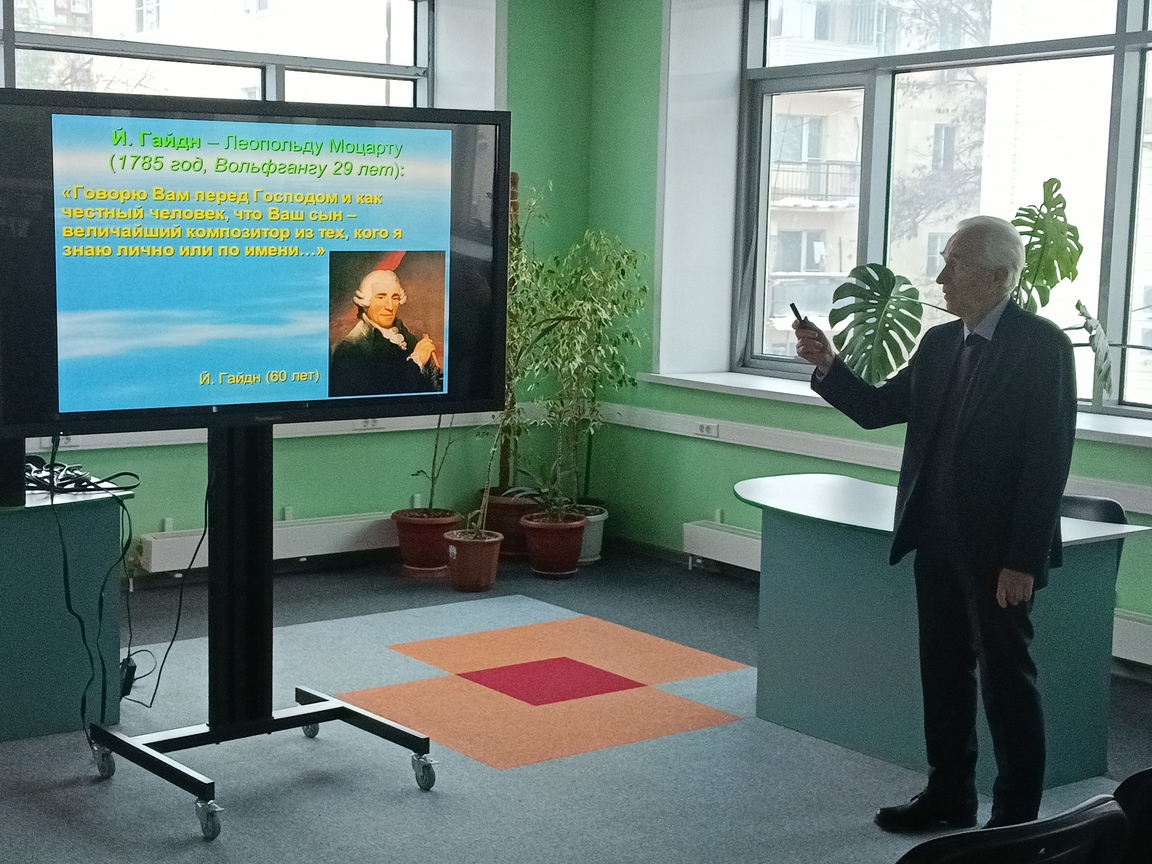 Более 30-ти лет в АГУ им. В.Н. Татищева ведет свою работу Клуб любителей классической музыки автором, которого является доктор физико-математических наук, профессор В.К. Карпасюк. Очередное заседание клуба прошло 28 января в стенах библиотечно-издательского комплекса. Встреча была посвящена 270-летию со дня рождения великого композитора Вольфганга Амадея Моцарта.