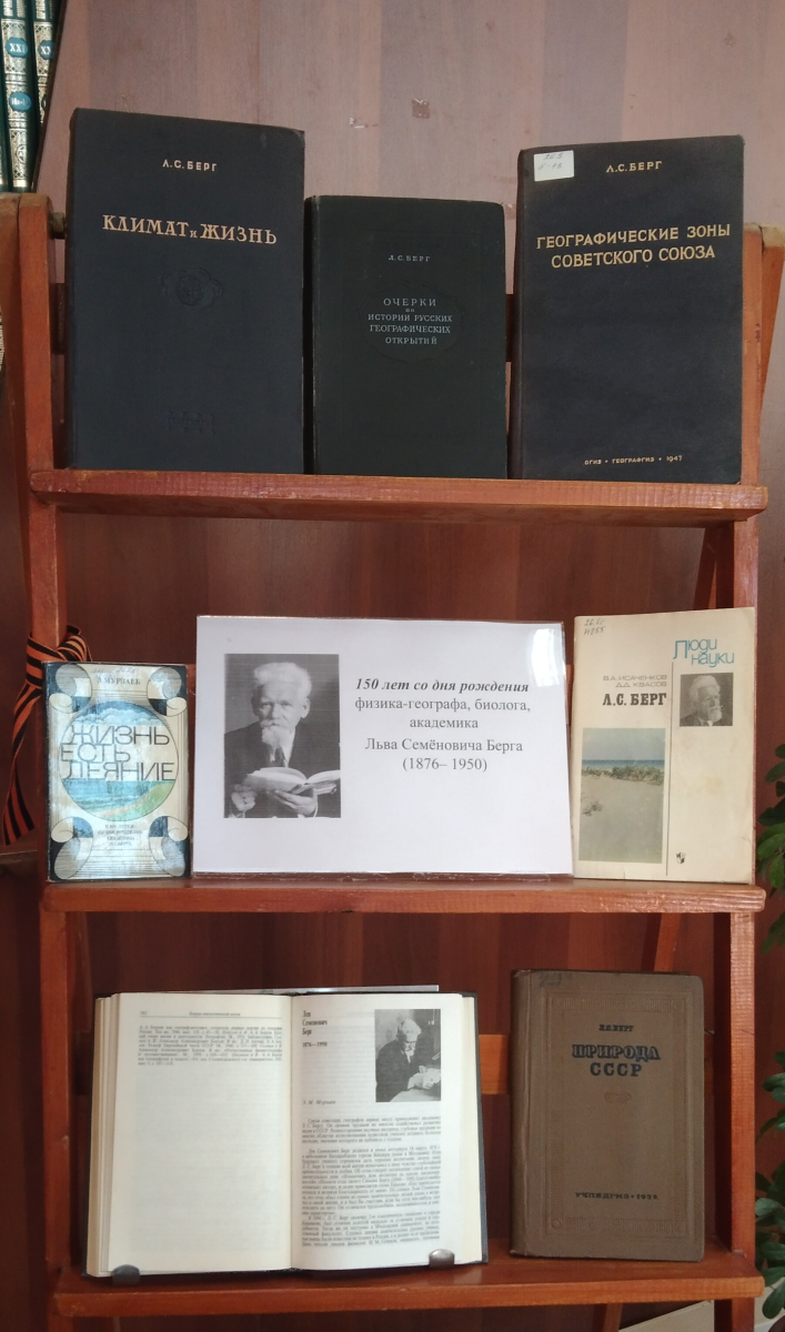 Лев Семёнович Берг Отечественный биолог и географ, академик, член-корреспондент, заслуженный деятель науки РСФСР, председатель Русского географического общества, исследователь Каспийского моря. Создал классические труды по ихтиологии, озероведению, теории эволюции жизни. Берг - создатель современной физической географии, являлся основоположником ландшафтоведения, а предложенное им ландшафтное деление, дополненное, сохранилось до сих пор.